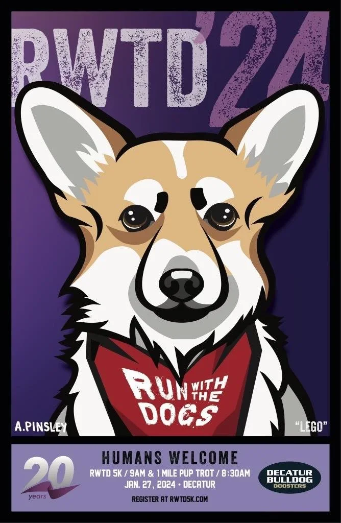 Make plans now to join us for the 21st annual Run With the Dogs 5K and Pup Trot! We are excited to return to Beacon Hill Middle School with an exciting course in the Decatur neighborhoods of MAK (McDonough-Adams-Kings Highway) and Oakhurst. All 5K and Pup Trot participants who register before January 11 will receive our famous long-sleeved t-shirt designed by artist (and Decatur lacrosse coach) Adam Pinsley. Register early for the best rates!